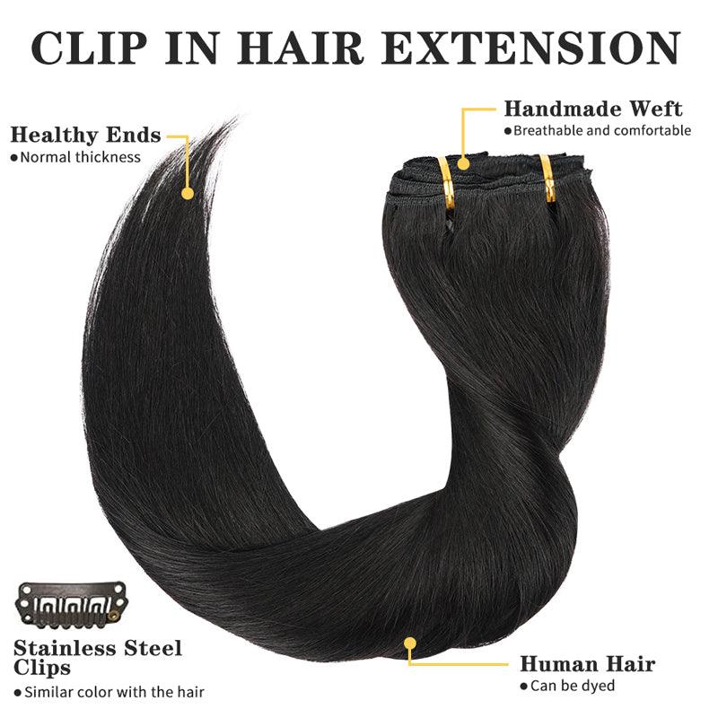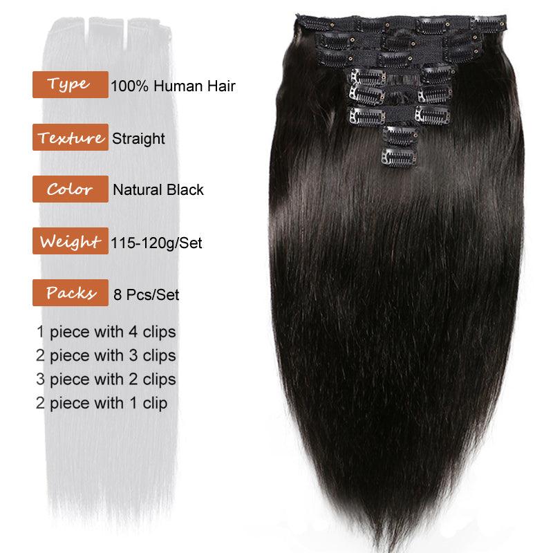 JYZ Straight Clip in Hair Extensions Human Hair 8pcs Per Set with 18 Clips Double Weft Clip in Human Hair Extensions